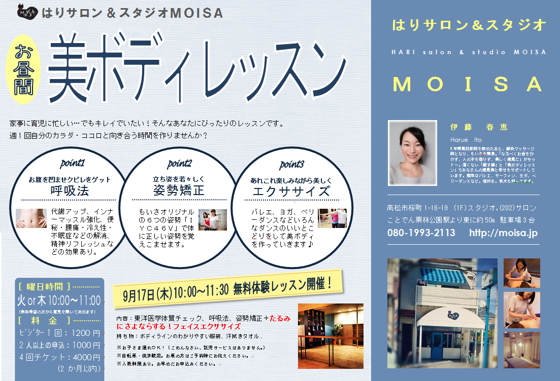内容:東洋医学体質チェック、呼吸法、姿勢矯正